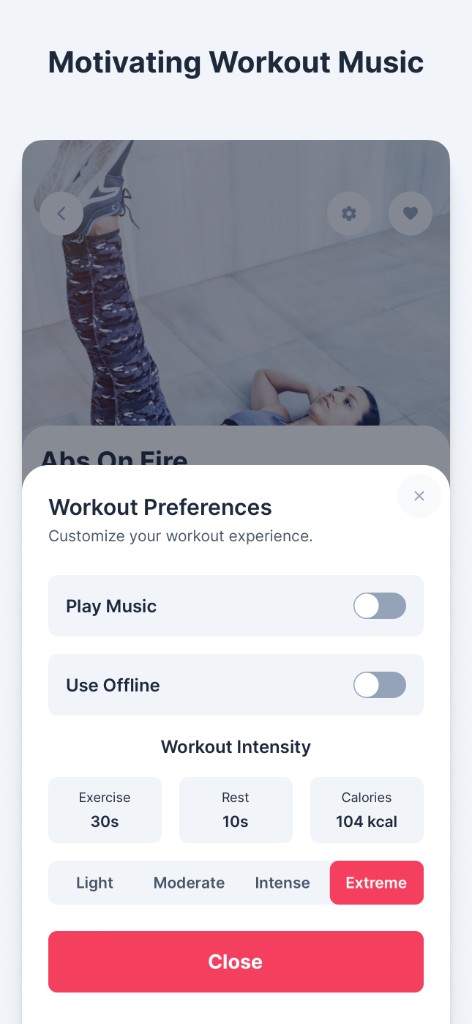 Train at home with video-led moves, step-by-step instructions, and rest timers. Adjust intensity from light to extreme so beginners and advanced users both feel challenged.